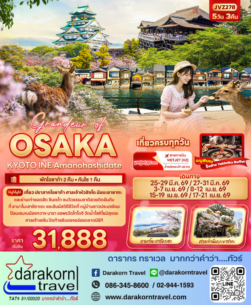 ทัวร์ญี่ปุ่น Grandeur of OSAKA KYOTO INE 5วัน 3คืน